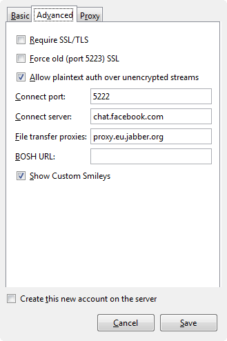 Connect server: chat.facebook.com